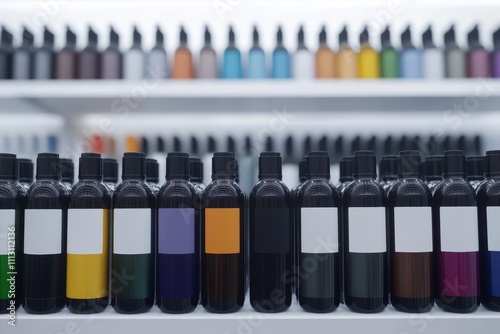 bottle, colourful, shelf, cosmetic, display, cardboard box, retail, product, beauty, design, assorted, variety, plastic, label, commercial, neat, organised, vibrant, shop, merchandise, row, different, shades, tint, colours, array, store, aesthetic, organisation, market, clean, choice, consumer, selection, arrangement, presentation