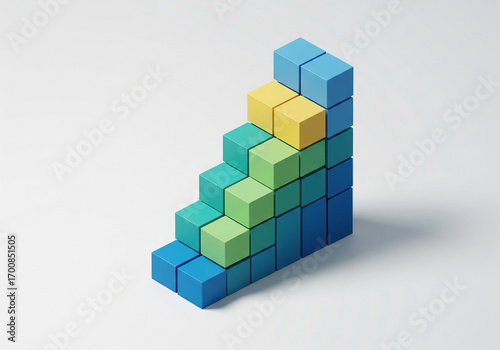 growth, progress, success, development, improvement, upward, increase, rising, chart, graph, datum, statistic, business, finance, abstract, geometric, building, block, construction, concept, colourful, gradient, blue, green, yellow, clean, simple, studio, nobody, conceptual, planning, strategy, achievement