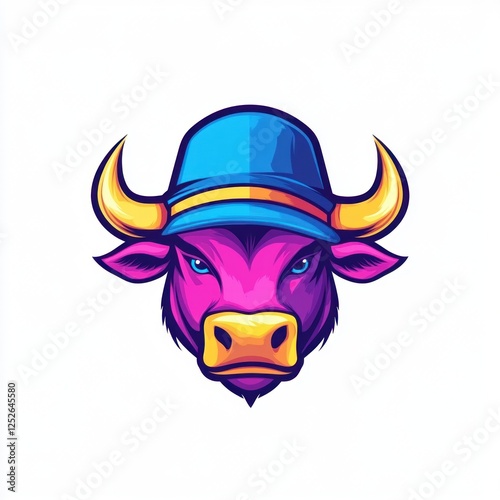 Colorful Bull Head Mascot with Trendy Hat - Bold Logo Design