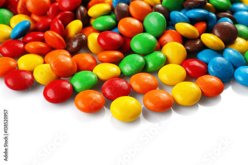 Colorful candies on white background, closeup