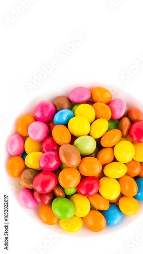 Colorful candy in a bowl against a white background