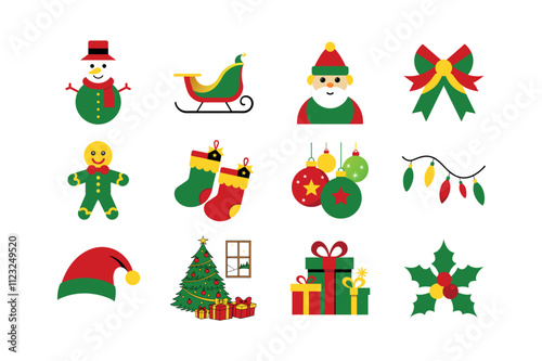 Colorful Christmas and Holiday Icons Set – Ornaments, Trees, Gifts, Santa Claus, Candy canes, Snowman, Bells and More