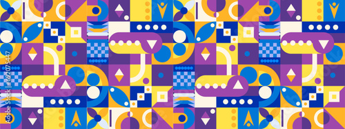 Colorful colourful geometric mosaic seamless pattern illustration with creative abstract shapes. Vector flat mosaic horizontal banners template