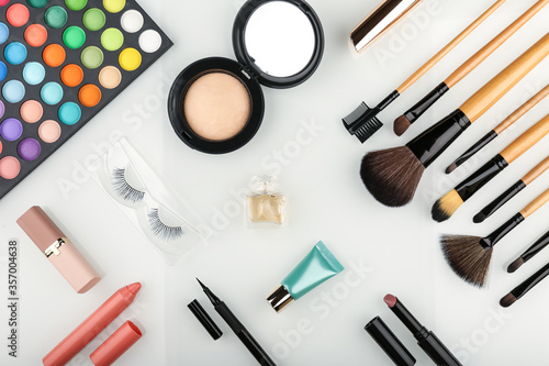 make-up, row, composition, topview, collection, creative, variety, accessory, cosmetic, professional, brush, glamour, many, background, nobody, fashion