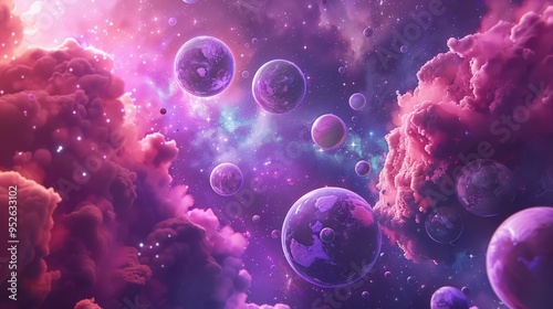 Colorful cosmic scene featuring swirling galaxies, vibrant nebulae, and floating planets in a captivating universe.