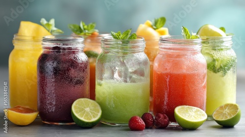 Colorful Detox Juices in Mason Jars