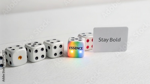 dice, inspiration, message, glow, vibrant, colours, bold, white, background, game, fun, choice, chance, creativity, motivation, positivity, challenge, growth, unique, design, play, casual attire, sharpened, symbol, leisure, light, expression, number, text, strategy, luck, engagement, decision, confidence, character, visual, lifestyle, art, arrangement, theme, encouragement, display, meaningful, artistic, simplicity, emotional, concept