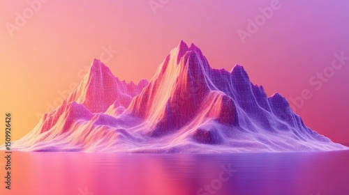 mountain, range, digital, colourful, vibrant, sunset, scene, landscape, pink, purple, orange, light, glow, water, surface, graphic, art, design, abstract, three-dimensional, model, illustration, texture, peak, ridge, cloud, sky, horizon, gradient, style, modern, artistic, render, colours, hue, shades, shape, composition, form, isolated, element