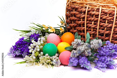 basket, flower, egg, celebration, feather, easter, holiday, traditional, culture, holiday, background, decoration, paint, object, spring, coloured, event, decorating, macro, food