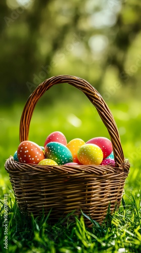 egg, basket, colourful, easter, grass, holiday, spring, festive, decoration, celebration, seasonal, vibrant, tradition, wicker, natural, green, lifestyle, creative, design, product, photo, advertising, decor, hand-made, vintage, modern, trendy