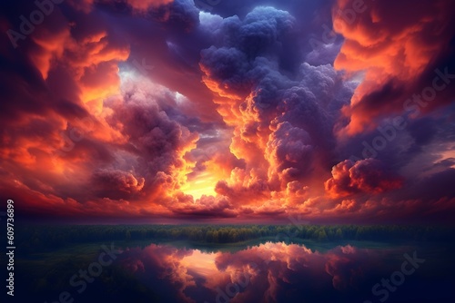 Colorful explosion sunset sky with colorful clouds, AI generated