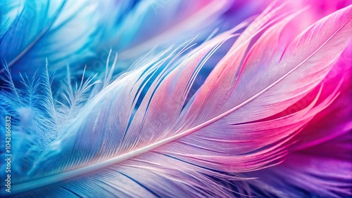 Colorful feather in pink, blue, and white close-up