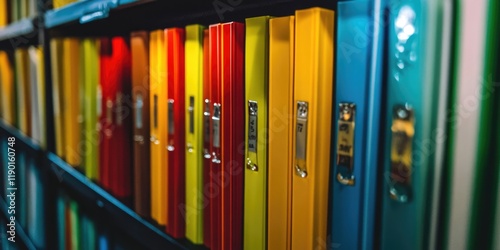 file, folder, organisation, office, modern, shelf, colours, document, storage, workplace, management, file, stationery, layout, arrangement, paperwork, red, yellow, blue, green, tidy, neat, vibrant, design, background, business, educational, clarity, access, system