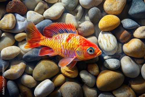 fish, colourful, underwater, pebble, aquatic, nature, wildlife, fresh water, goldfish, marin, stone, habitat, environment, scenery, animal, tranquil, colours, beautiful, photo