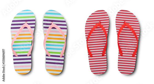 Colorful flip flops isolated on white background.