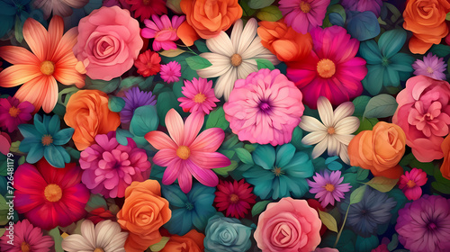 Colorful flowers background, spring season concept