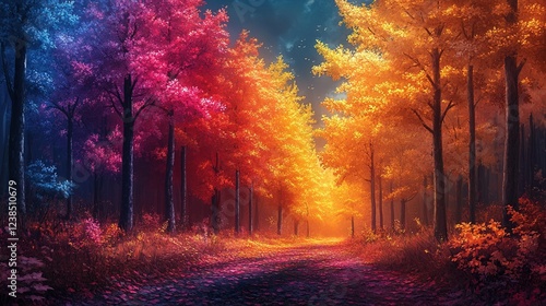 forest, tree, colourful, path, light, nature, autumn, wood, scene, vibrant, bright, foliage, landscape, season, paseo, background, trail, outdoors, scenic, wood, fall, environment, park, pathway, natural, grove, daylight, sunlight, ground, setting, calm, peaceful, journey, beauty, travel, destination, wilderness, countryside, exploration, adventure, quiet, serene, magical, mystic, fantasy, dreamy, inspiring, artistic, painting