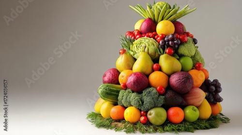colourful, fruit, vegetable, arrangement, festive, tree, centrepiece, holiday, celebration, food, vibrant, fresh, healthy, decoration, healthy eating, festive season, harvest, nourishment, variety, culinary arts, dietary