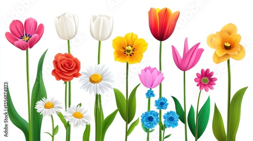 garden flower, rose, tulip, daisy, colourful, bloom, fresh, natural, isolated, white background, cut-out, crisp, vibrant, organic, floral, detailed, realistic, studio, lighting, macro, closeup, glossy, textured, fragrant, beautiful, epicure, premium, composition, arrangement, highlight, shadow, depth, nature, spring, bright, cheerful, lively