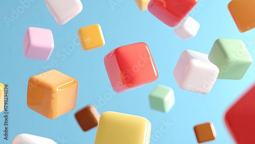 cube, colourful, glossy, pastel, blue, background, floating, shape, abstract, three-dimensional, rendering, design, modern, geometric, bright, vibrant, happy, joyful, fun, light, airy, clean, minimal, simple, candy, sweet, block, object, illustration, graphic, texture, pattern, style, image, art, creative