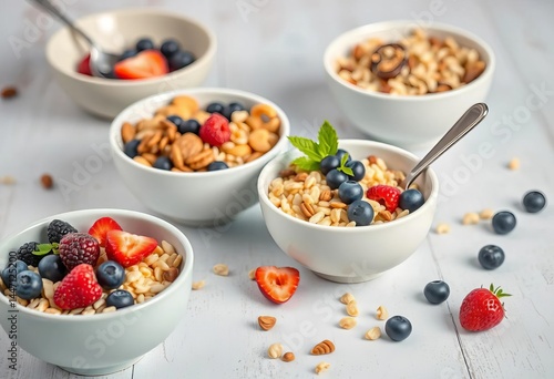Colorful gluten-free cereal bowls with healthy grains and berries, natural, gluten-free