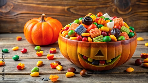 Colorful Halloween candy bowl filled with fun treats at a festive gathering, Halloween, candy, bowl, colorful, treats