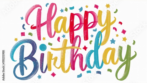Colorful Happy Birthday Handwritten Lettering with Confetti for Card Design