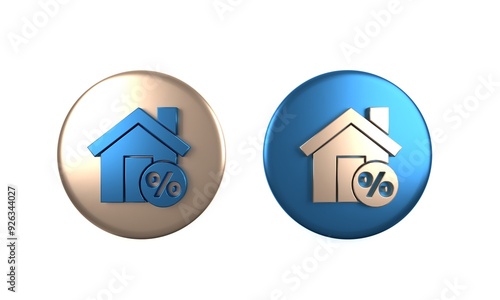 home, house, discount, percentage, illustration, signs, symbol, icon, eur, loan, three-dimensional, render, rendering, colours, colourful, blue, gold, gold, circle, buttons, building, mortgage, estate, real, business, investment, sale, design, finance, percent, financial, property, flat, rate, price, credit, money, interest, apartment, bank, concept, graphic, element, commercial, banking, buy, purchase, residential