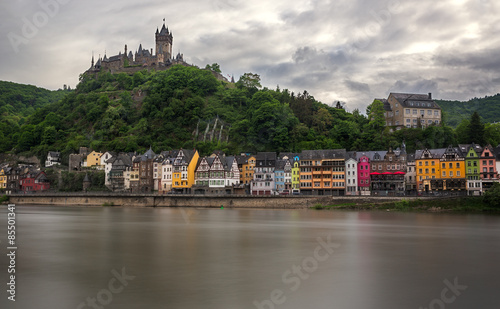 Colorful houses in front of Cochem castle, Moselle, Germany