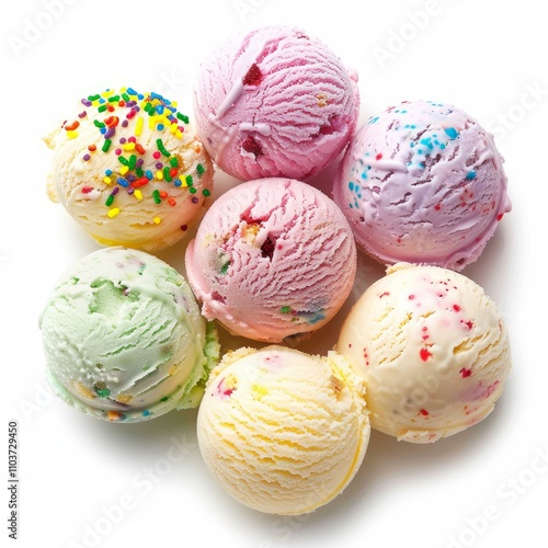 ice, cream, scoop, colourful, variety, favor, dessert, sweet, cold, treat, food, sprinkle, chunk, white, background, pink, purple, yellow, green, delicious, creamy, glacé, summer, refreshment, snack, indulgence, tasty, deliciously, confectionery, dairy, product, isolated, studio, shot, close, up, top, view, group, assortment, choice, fun, festive, celebration, birthday, party, happiness, joy, childhood