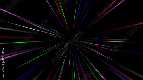 Colorful light rays isolated on plain black background