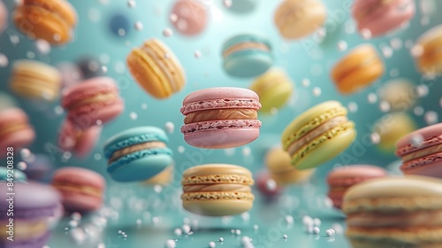 pastry, french, dessert, sweet, treat, bakery, confectionery, colourful, vibrant, blue, background, floating, whimsical, playful, indulgence, closeup, photo, food, photo, delicious, epicure, baking, receipe, shell, frosting, filling, cream, almond, flour, sugar, egg, white, culinary, snack, breakfast, lunch, dinner, brunch, tea, time, hot drink, party, celebration, gift, special, occasion, birthday, wedding