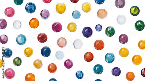 Colorful marbles arranged in a random pattern on a transparent background
