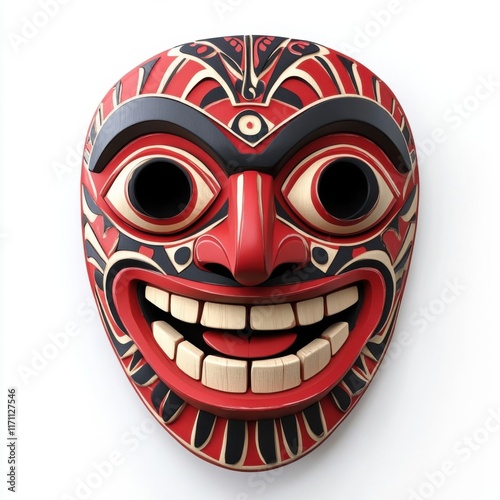 mask, facial, art, decoration, culture, expressive, vibrant, hand-made, wooden, unique, tradition, heritage, festival, performance, symbol, craftsmanship, aesthetic, artistic, design, joyful, intricate, red, black, mouth, eye, cultural, historical, tribal, exhibit, display, museum, collectable, community, celebration, pattern, ornamental, sculptural, visual, gallery, portrait, folk, character, imagery, representation, creativity, shadow, light