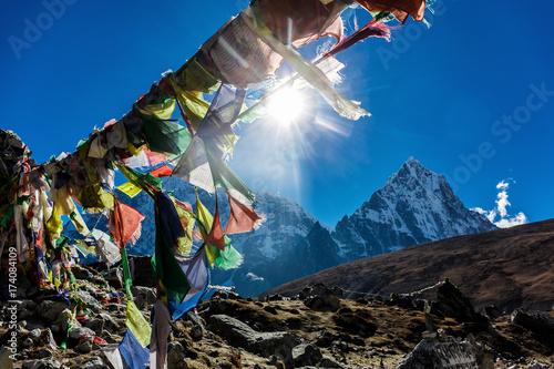 Colorful Nepalese flags