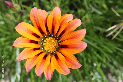 beautiful, single, symmetry, pollen, summer, floral, botanical, fragrant, blossom, fresh, orange, flower, flora, sunflower, daisy, gerbera, zinnia, nature, red, gazania, bright, gardening, stamen, round, blooming, garden, closeup, sunny, natural, detail, decorative, background, gold, spring, macro, bloom, plant, bed, sun, yellow, flower petals, stripes, grow, season, striped, colourful, colours