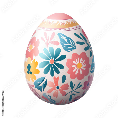 Colorful Painted Easter Egg with Floral Design and Pastel Colors