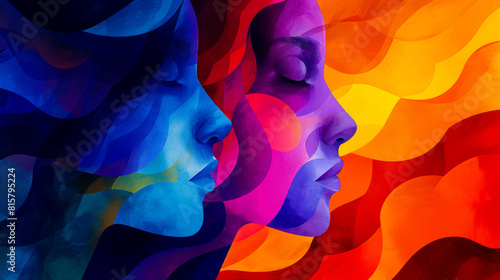 Colorful painting of two womens faces