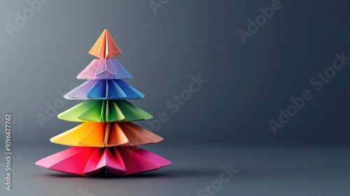 colorful paper Christmas tree, origami decoration, festive art, vibrant hues, modern design, minimalistic style, creative holiday decor, artistic arrangement, cheerful home ambiance