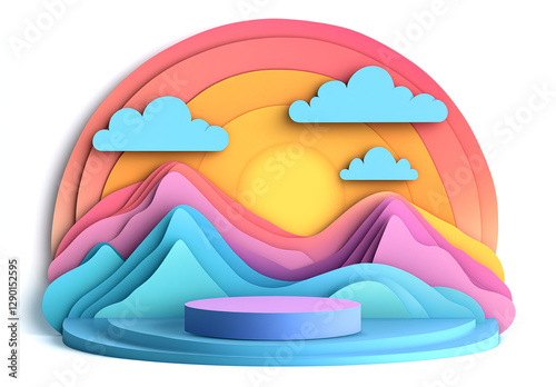 Colorful Papercut Landscape with Product Display Podium