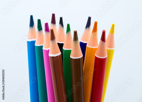 Colorful pencils group on white background
