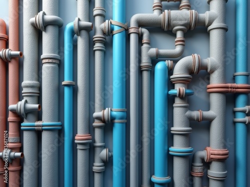plumbing, pipe, industrial, water, line, gas, infrastructure, facility, construction, colourful, wall, network, transport, blue, grey, orange, design, engineering, maintenance, utility, installation, connection, system, modern, layout, vibrant, structure, architecture, renovation, mechanical, material, metal, residential, commercial, drainage, fluid, flow, supply, resource, environmental, technology, piping, style, craftsmanship, fitting, connector, safety, efficiency, aesthetic