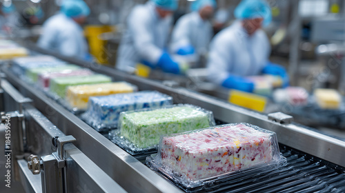 colourful, sliding, closeup, sharpened, texture, colours, men at work, background, industrial, food processing, environment, production, manufacturing, machinery, ice cream, delicious, tasty, fruity, favor, hygiene, safety, equipment, technology, factory, facility, quality control, inspection, cardboard box, assembly line, efficiency, speed, precision, motion, movement, vibrant, rainbow, supervision