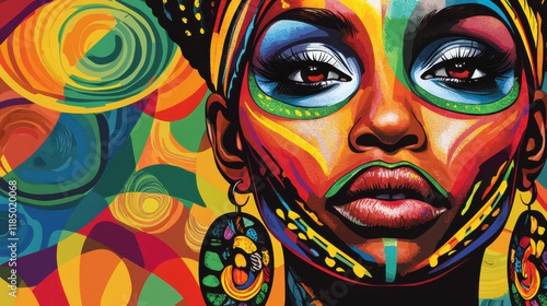 poster, woman, vivid colors, portrait, vibrant, heritage, art, celebration, culture, creative, empowerment, symbolic, beauty, resilience, pride, history, diversity, bold, expression, artwork, storytelling, colourful, artistic, tradition, honour, warm tones, unique