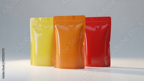 cardboard box, pouch, colourful, vibrant, yellow, orange, red, white background, design, plastic, food, beverage, drink, juice, snack, branding, marketing, retail, commercial, business, modern, contemporary, minimalist, studio shot, still life, advertising, promotion