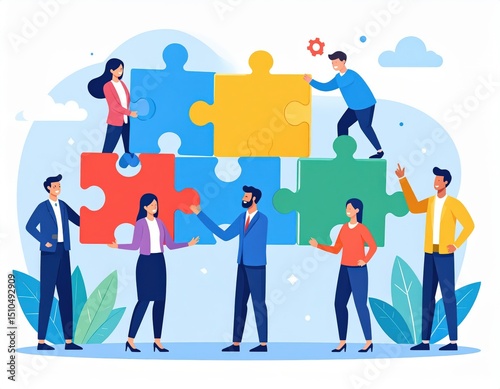 Colorful Puzzle Collaboration Teamwork and Problem Solving Illustration