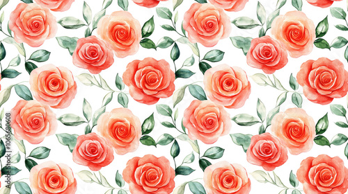 Colorful seamless floral paisley pattern featuring hand painted pink watercolor roses and leaves on a white background