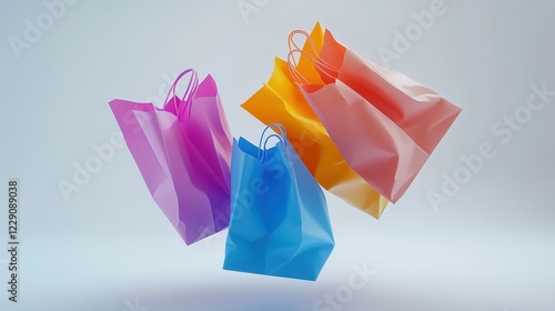 Colorful shopping bags falling with christmas tree on color background,holiday shopping online season,holiday winter shopping bags and gift boxes,space for text.