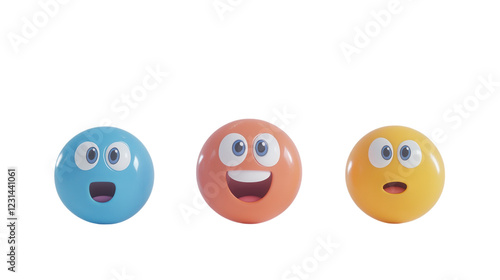 Colorful smiling balls express different emotions in a playful arrangement against a white background