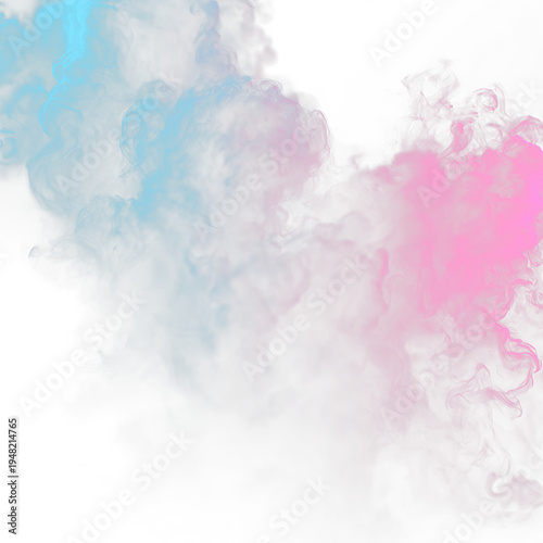 Colorful smoke flows in blue and pink shades, creating a dynamic visual effect on a transparent background